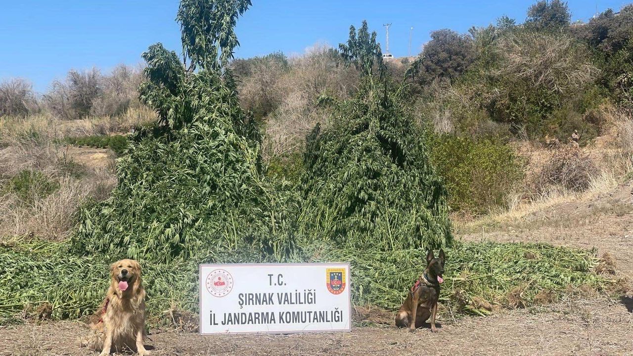 Şırnak İl Jandarma Komutanlığı Narkotik ve KOM Şube Müdürlüğü ekipleri tarafından Şırnak’ın Cizre ilçesinde hassas burunlu narkotik köpekleri Sayaç ve Vada narkotik köpekleri ile uyuşturucu operasyonu düzenlendi. Yapılan operasyonda, Piyasa değeri yaklaşık 1 buçuk milyar TL olan 42 bin 300 kök kenevir bitkisi, kubar esrar, 2 adet AK-47 piyade tüfeği ve mühimmat, 1 adet ruhsatsız av tüfeği ele geçirildi.
