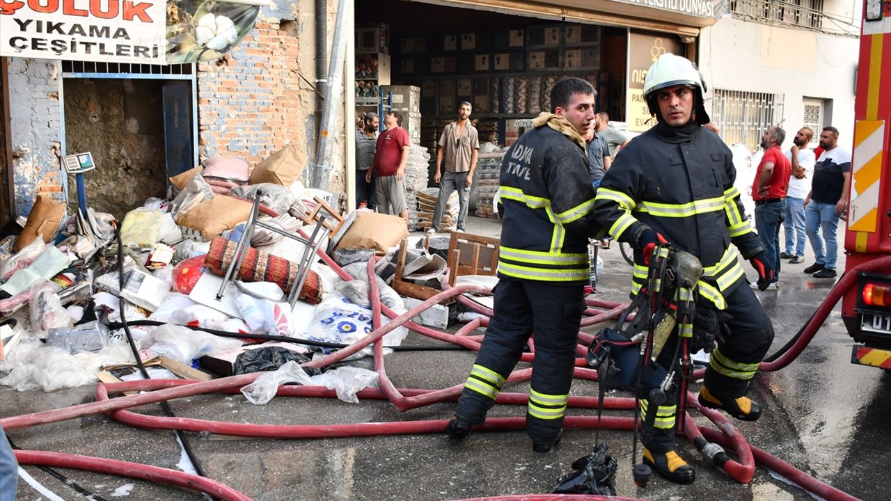 İtfaiyenin müdahalesiyle söndürülen yangında tekstil dükkanında hasar oluştu.