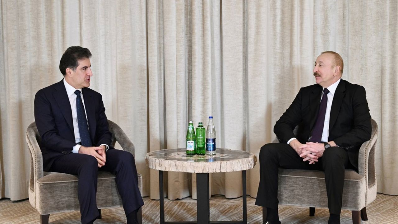 Açıklamaya göre, Aliyev ve Barzani ekonomik, ticari, kültürel ve insani alanlardaki ilişkilerin geliştirilmesi konusunda görüş alışverişinde bulundu, karşılıklı ilgi alanlarına giren konuları ele aldı.