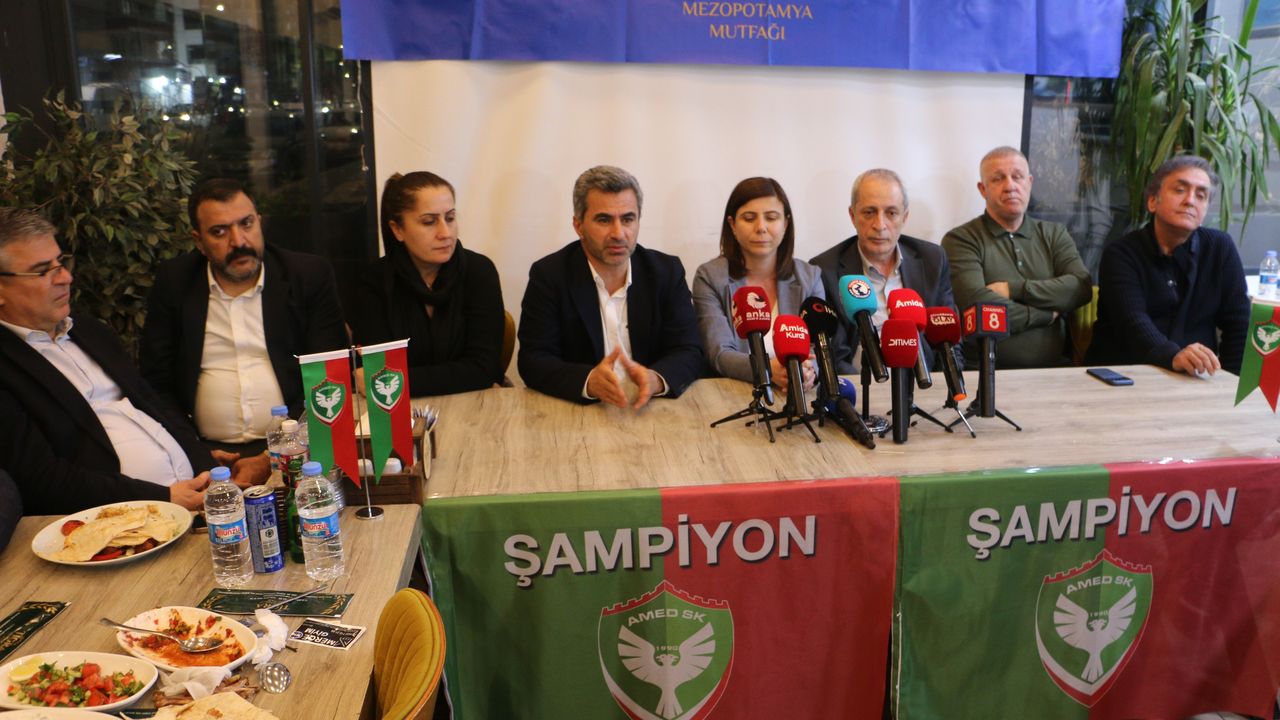 Daha sonra konuşan Amed Sportif Faaliyetler Başkanı Nahit Eren, bu dayanışmayı daha önce de yaşadıklarını söyledi. Eren, "Bugün kentimizin bütün bileşenleri, özellikle de istişare kurulumuz ki bildiğiniz üzere kentteki sivil toplum kuruluşları, meslek örgütleri ve yerel yönetim temsilcilerinden oluşuyor çok kıymetli bir dayanışma örneği sergiledi. Antrenman sahamızda futbolcularımızla ve teknik heyetimizle bir araya gelerek, tıpkı geçmişte olduğu gibi, kentin tamamını bu şampiyonluk havası etrafında kenetlenmeye davet ettiler. Bu inancı ve motivasyonu hem futbolcularımıza hem de teknik ekibimize güçlü şekilde hissettirdiler. Ben de bu anlamda, kulüp başkanı olarak ve kulüp yönetimi adına, başta Amedspor olmak üzere emeği geçen herkese gönülden teşekkür ediyorum" şeklinde konuştu.