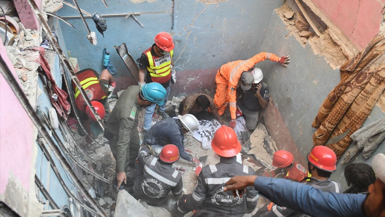 Pakistan'ın Karaçi kentinde ilk katında meydana gelen patlamanın ardından apartmanın bir kısmının çökmesi sonucu ilk belirlemelere göre 4'ü çocuk 13 kişi hayatını kaybetti, 14 kişi yaralandı.