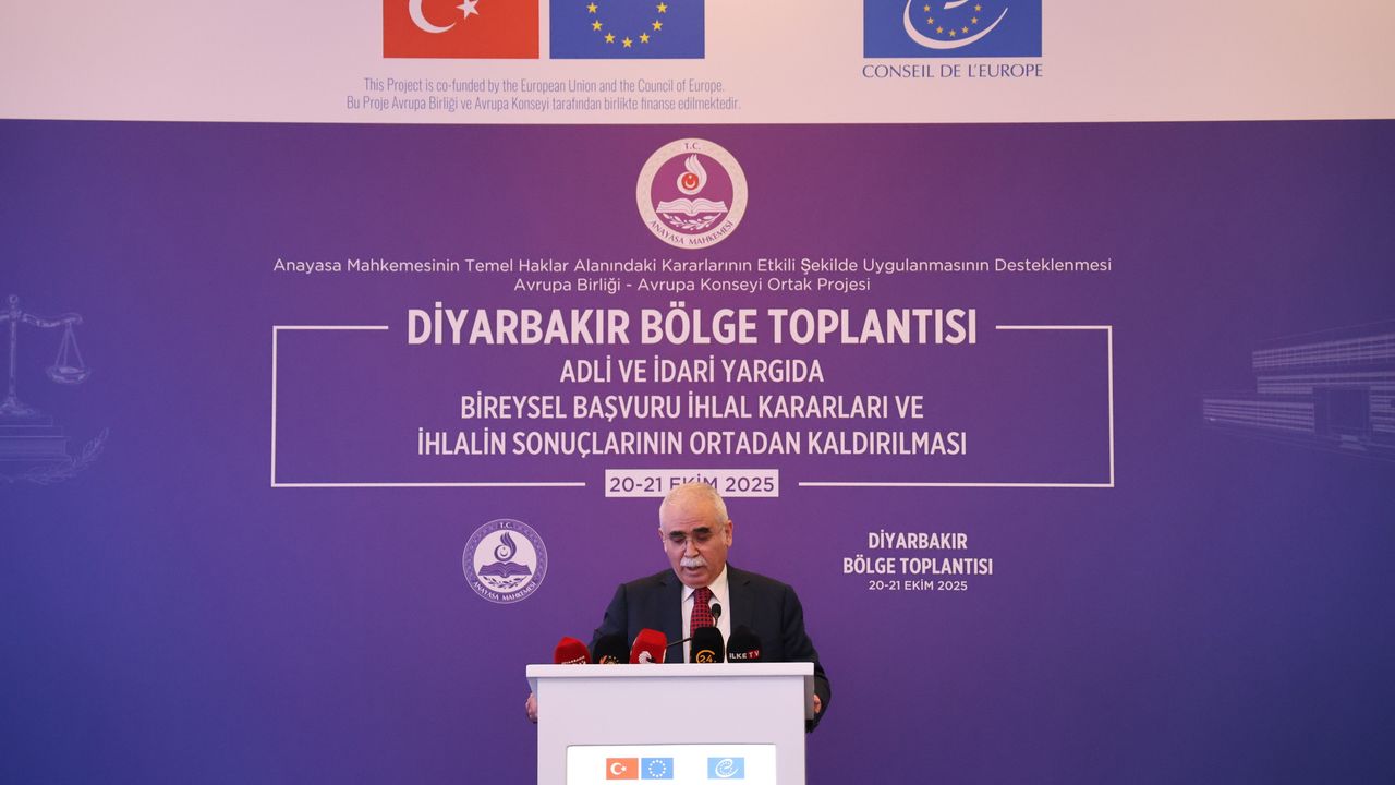 Anayasa Mahkemesi ile Avrupa Birliği-Avrupa Konseyi iş birliğinde yürütülen "Anayasa Mahkemesinin Temel Haklar Alanındaki Kararlarının Etkili Şekilde Uygulanmasının Desteklenmesi Projesi" kapsamında "Adli ve İdari Yargıda Bireysel Başvuru İhlal Kararları ve İhlalin Sonuçlarının Ortadan Kaldırılması" konulu bölge toplantılarının 7'ncisi Diyarbakır'da başladı. Bir otelde düzenlenen toplantıya Anayasa Mahkemesi Başkanı Kadir Özkaya, Yargıtay Başkanı Ömer Kerkez, Yargıtay Cumhuriyet Başsavcısı Muhsin Şentürk, Avrupa Konseyi İnsan Hakları, Adalet ve Hukuki İşbirliği Standartlarının Uygulanması Dairesi Başkanı Lilja Grétarsdttır, Avrupa Konseyi Ankara Program Ofisi Başkanı William Massolın, Diyarbakır Cumhuriyet Başsavcısı Mustafa Çelenk, Diyarbakır Adli Yargı Adalet Komisyonu Başkanı Erhan Çavuşoğlu, Diyarbakır Bölge Adliye Mahkemesi Başkanı Kenan Şenlik, Diyarbakır Bölge Adliye Mahkemesi Cumhuriyet Başsavcısı Ali İrfan yılmaz ve davetliler katıldı.