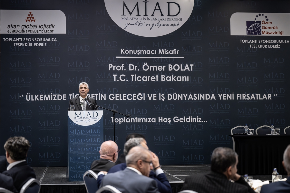 Bolat, Malatyalı İş İnsanları Derneği'nin (MİAD) İstanbul'da düzenlenen geleneksel aylık toplantısında "Ülkemizde Ticaretin Geleceği ve İş Dünyasında Yeni Fırsatlar" başlıklı konuşma gerçekleştirdi.