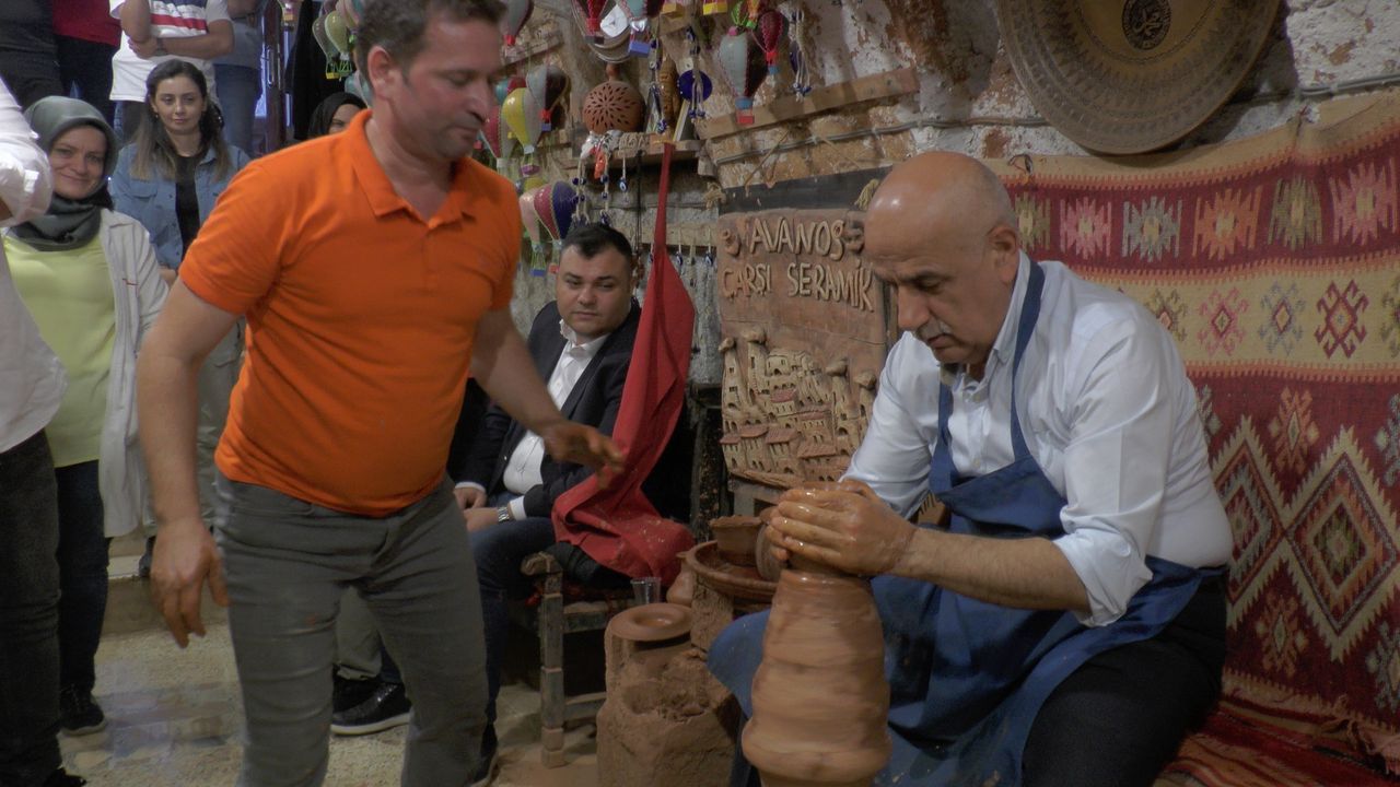 Tarım ve Orman Bakanı Prof. Dr. Vahit Kirişci, Nevşehir’in Avanos ilçesinde önce çömlek yapımını izledi, daha sonra da çömlek yaptı.