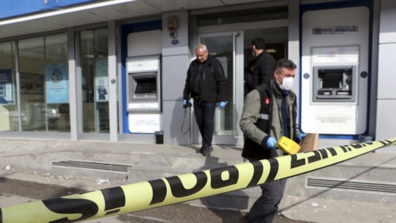 Polis ekiplerinin banka şubesindeki incelemeleri devam ediyor.