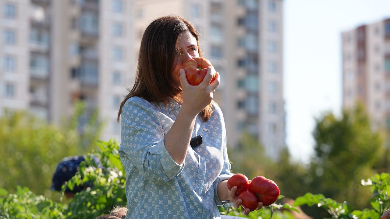 Alanda 11 çeşit domates, 2 çeşit patlıcan, 6 çeşit biber, altın çilek, kavun, karpuz ve salatalık başta olmak üzere 30 farklı sebze ve meyveden ilk ürünler toplandı. Hasat sonunda elde edilen ürünler kadınlarla paylaşıldı.