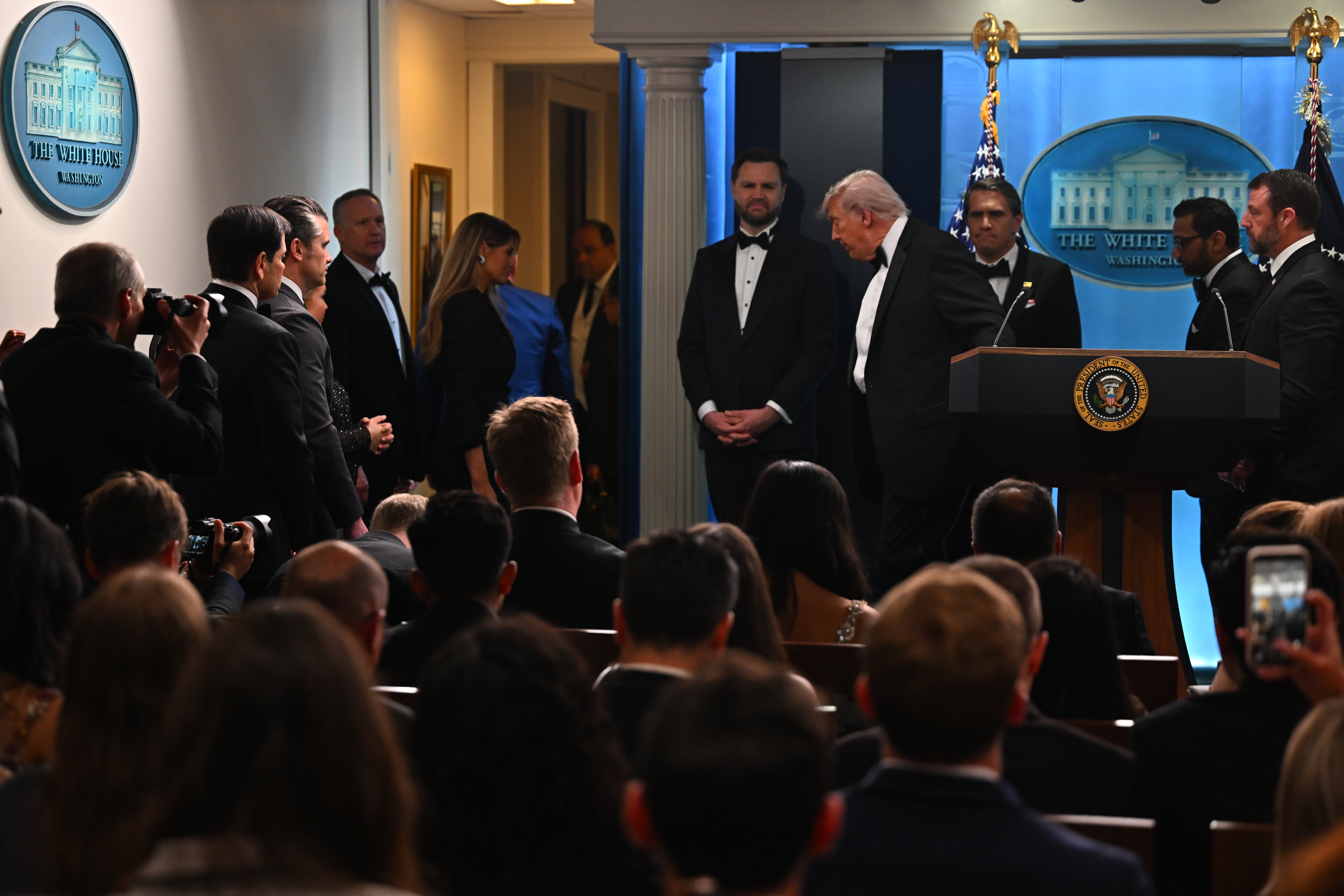 Salondaki bazı davetlilerin olay sırasında çığlık attığı, bazılarının ise USA (ABD) diye tezahürat yaptığı duyuldu.