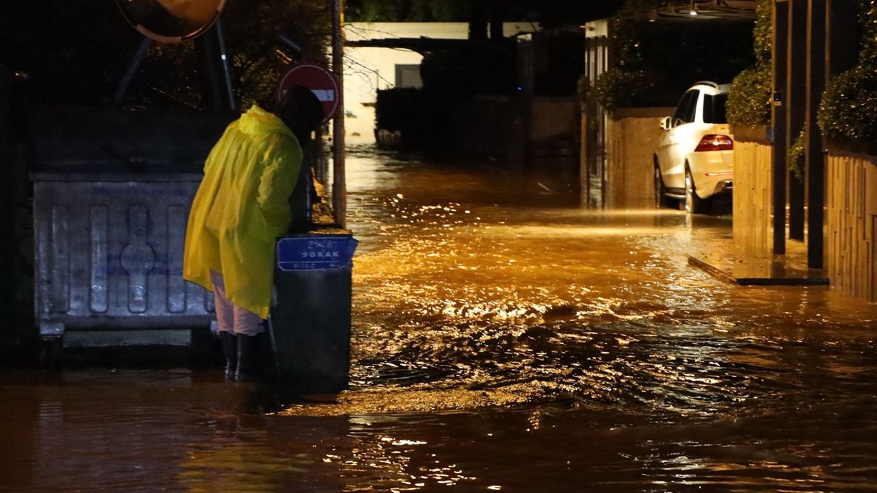 Konacık ve Gümbet bölgesindeki derelerden gelen sular Bitez Mahallesi'nden denize ulaştı. Derelerin debisi yükselirken, bölgedeki bazı cadde ve sokaklar da sular altında kaldı.