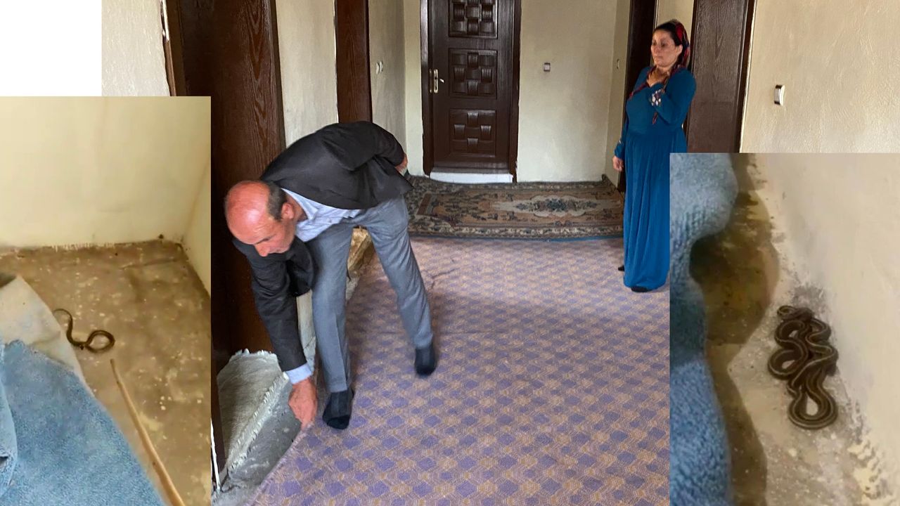 Hakkari'nin Yüksekova ilçesinin Çukurca köyünde yaşayan Oyman ailesine ait evin her tarafından çıkan yılanlar korkutuyor.