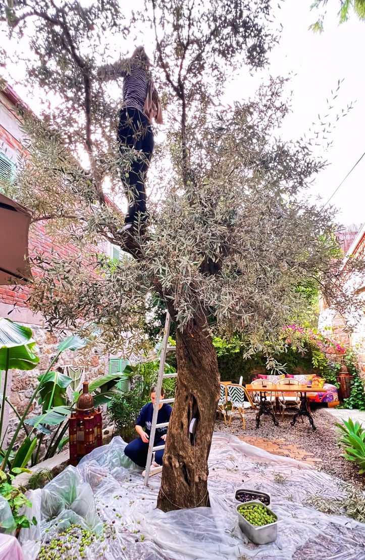 O anları sosyal medya hesabından yayımlayan oyuncu; "Zeytinlerimizi topluyoruz. Tek bir ağaç tüm sene hepimizi besliyor. Varlığına şükür..." dedi.