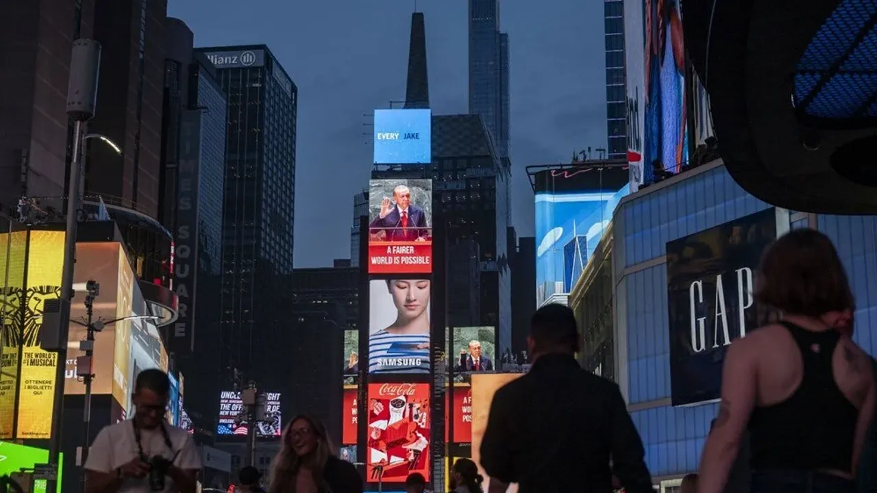 Erdoğan'ın "Daha adil bir dünya mümkün" ve "Dünya 5'ten büyüktür" ifadeleri New York cadde ve sokaklarında yer aldı.