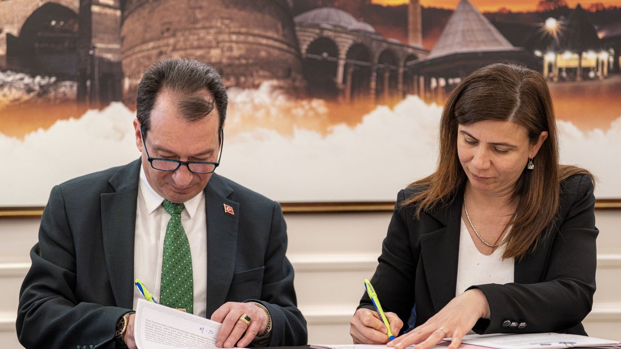 Büyükşehir Belediyesi hizmet binasında gerçekleştirilen imza töreninde Büyükşehir Belediyesi Eşbaşkanları Serra Bucak ile Doğan Hatun, Dicle Üniversitesi Rektörü Prof. Dr. Kamuran Eronat ile Rektör Yardımcıları Prof. Dr. Mehmet Siraç Özerdem, Prof. Dr. Velat Şen ve Prof. Dr. Vahap Özpolat ile Genel Sekreter Doç. Dr. Mustafa Uğurlu Arslan’ın yer aldığı heyeti kapıda karşıladı. Protokol imza törenine DBB Genel Sekreteri Serdar Bakıroğlu ve Genel Sekreter Yardımcısı Zerin Türk de katıldı.