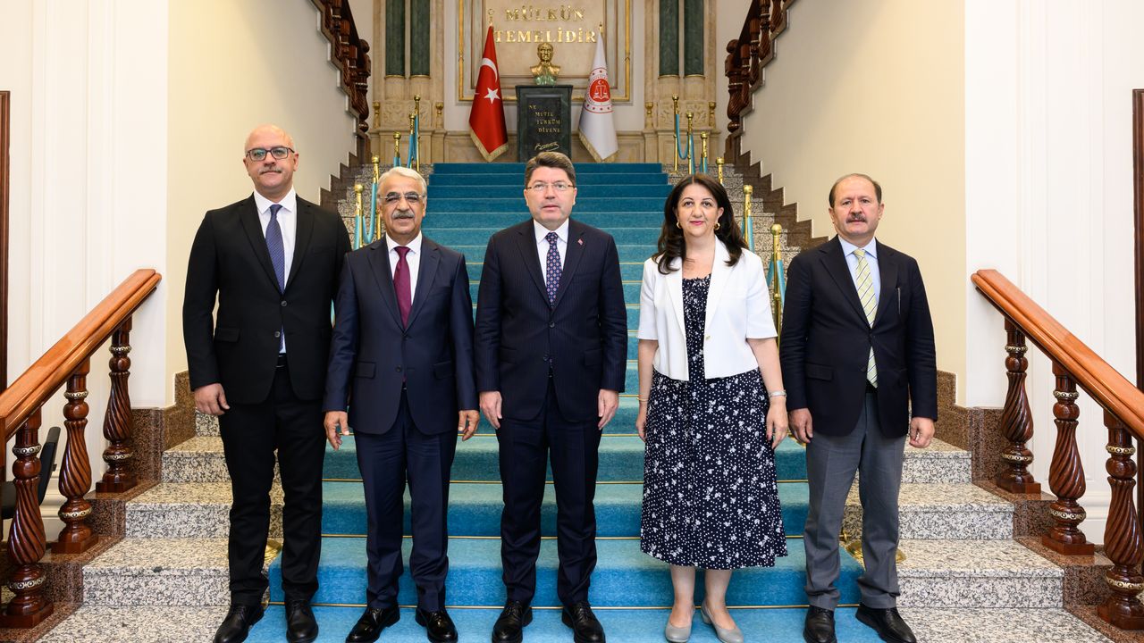 Adalet Bakanı Yılmaz Tunç, DEM Parti heyetini Bakanlıkta kabul etti. Heyette DEM Parti Meclis Başkanvekili Pervin Buldan, eski Meclis Başkanı Mithat Sancar ve avukat Özgür Erol yer aldı. Yaklaşık 1 saat süren görüşmede hasta mahkumların durumu ve 'Terörsüz Türkiye' süreci ele alındı.