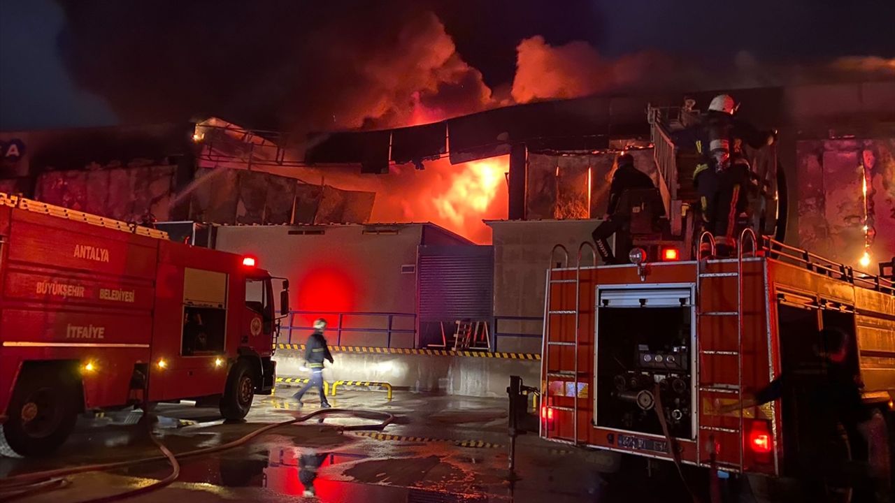 Antalya'nın Serik ilçesinde süpermarket zincirine ait depoda çıkan yangın kontrol altına alındı.