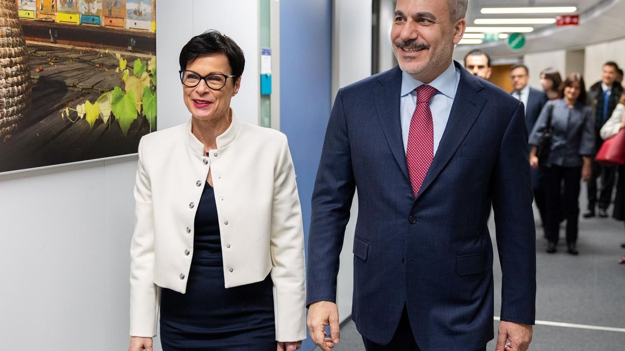 Dışişleri Bakanı Hakan Fidan, NATO Dışişleri Bakanları Toplantısı’na katılmak üzere Belçika’nın başkenti Brüksel’e geldi. Bakan Fidan, temasları kapsamında Genişlemeden Sorumlu Avrupa Birliği (AB) Komiseri Marta Kos ile görüştü.