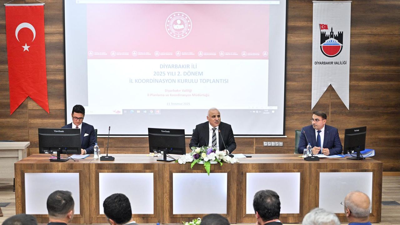 2025 yılı 2. Dönem İl Koordinasyon Toplantısı, Yatırım İzleme ve Koordinasyon Başkanlığı (YİKOB) Toplantı Salonu’nda gerçekleştirildi. Toplantıya; Vali Murat Zorluoğlu, Dicle Üniversitesi Rektörü Prof. Dr. Kamuran Eronat, vali yardımcıları, İl Jandarma Komutanı Tümgeneral Selçuk Yıldırım, İl Emniyet Müdürü Fatih Kaya, kaymakamlar, Diyarbakır Büyükşehir Belediyesi Genel Sekreteri Emrullah Gördük, ilçe belediye başkan ve temsilcileri ile kamu kurum ve kuruluşlarının müdürleri katıldı.