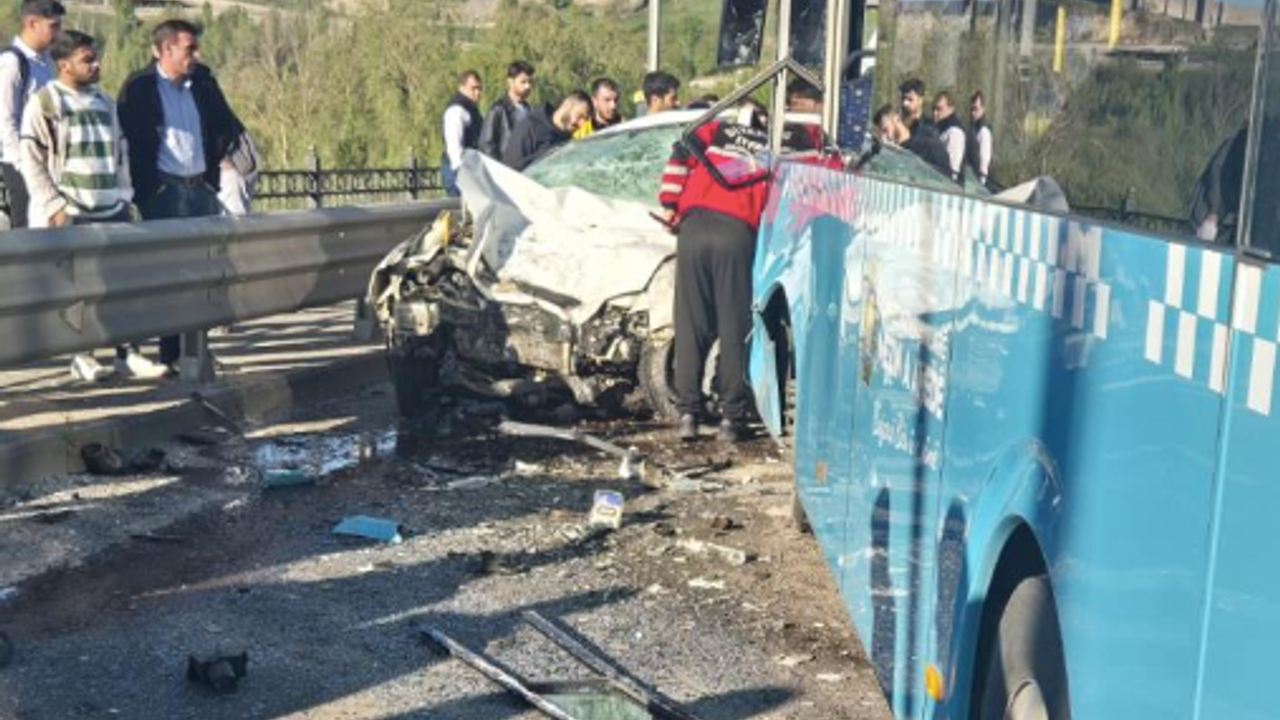Edinilen bilgilere göre, Üniversite Köprüsü'nde Emin Ateş idaresindeki otomobil ile belediyeye ait halk otobüsü kafa kafaya çarpıştı. İhbar üzerine olay yerine sağlık, itfaiye ve polis ekibi sevk edildi.