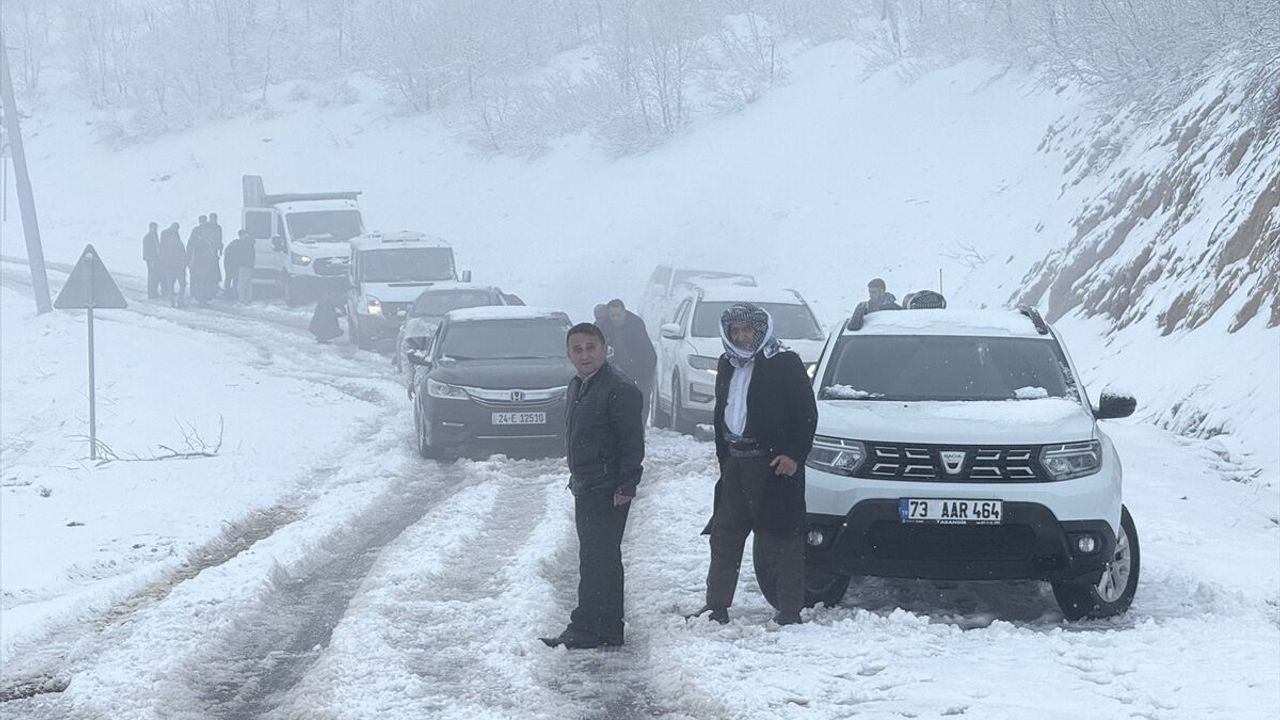Vatandaşlar, yolda kalan bazı araçları iterek devam etmelerini sağladı.