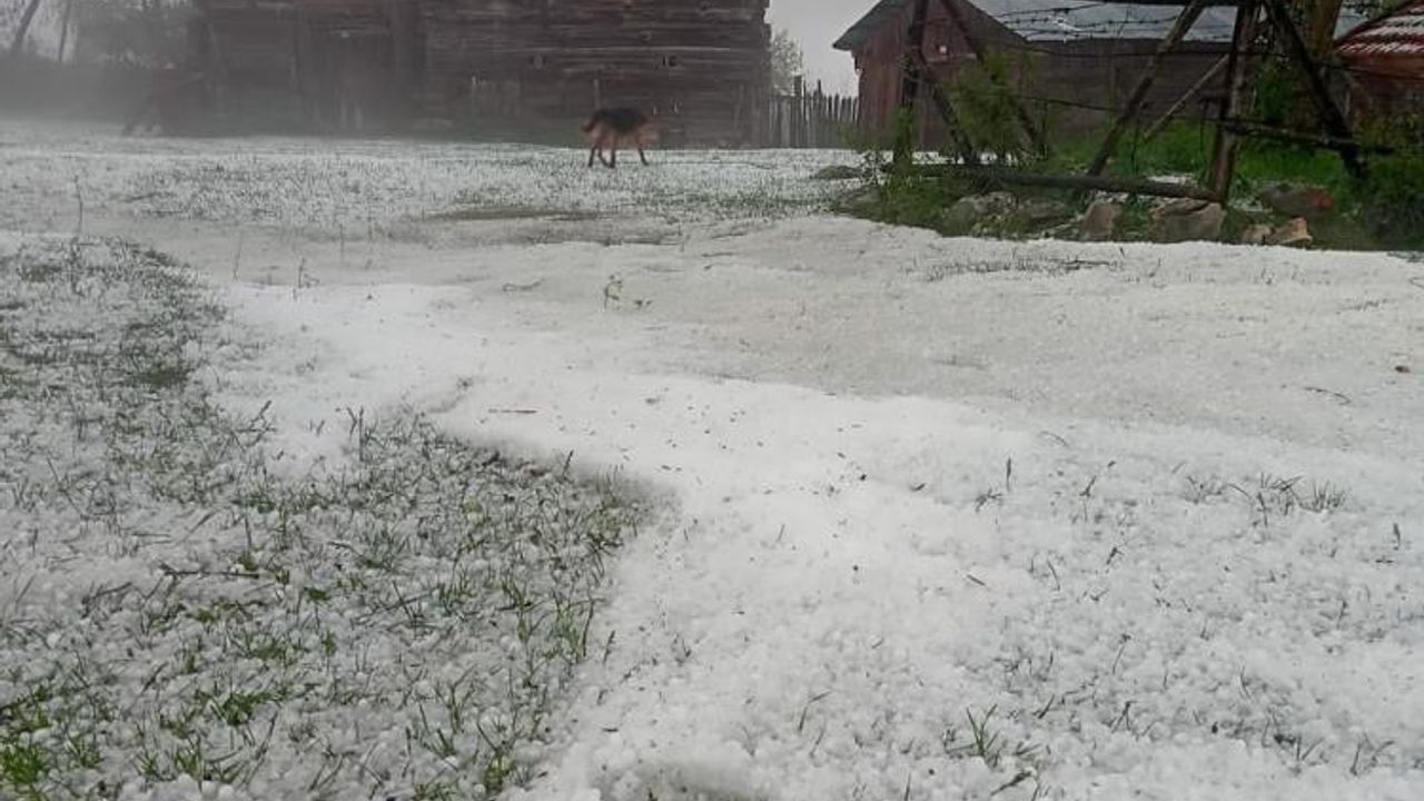 Dolu sonrası köy beyaz örtüyle kaplandı