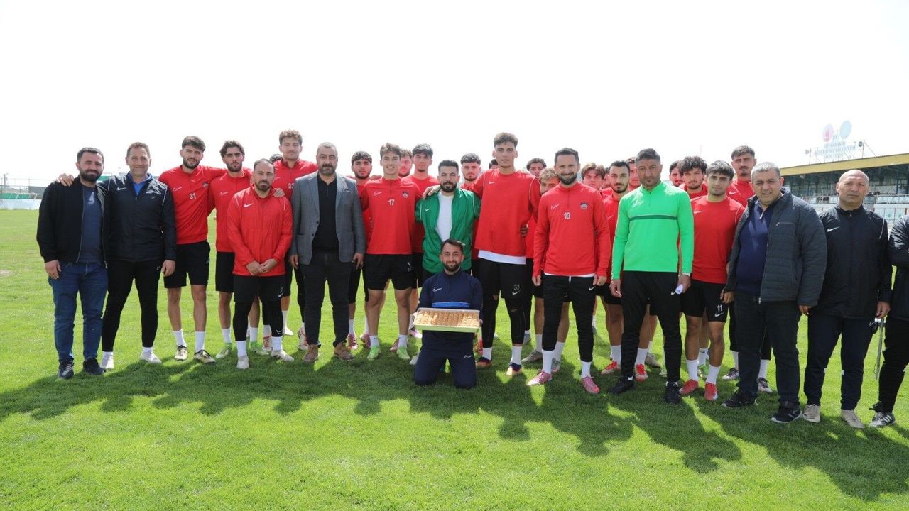 Ziyaret, teknik heyet ve futbolcuların galibiyet sözü vermesiyle devam ederken, yapılan tatlı ikramı ile moral depolandı.