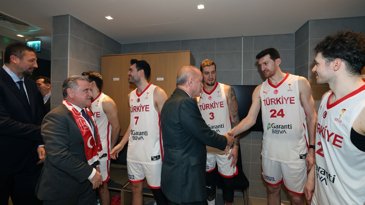 Turkcell Basketbol Gelişim Merkezi'nde oynanan karşılaşmayı yerinde takip eden Cumhurbaşkanı Erdoğan, maçın ardından tribündeki vatandaşları selamladı, yanına gelen vatandaşlarla da sohbet etti.