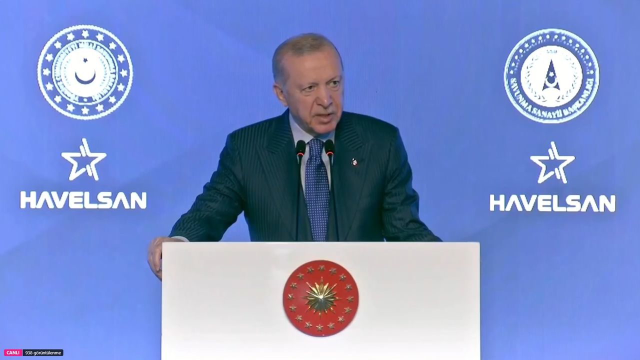 İşte Erdoğan'ın konuşmasından satır başları: Türk Silahlı Kuvvetlerimizin değerli mensupları, HAVELSAN'ımızın değerli yöneticileri ve çalışanları, Türk Silahlı Kuvvetleri'nin değerli temsilcileri, kıymetli misafirler, sizleri en kalbi duygularımla, hürmetle ve muhabbetle selamlıyorum. Öncelikle her birinizin Ramazan-ı Şerif'ini ayrı ayrı tebrik ediyorum. Bu mübarek günlerin ülkemiz, milletimiz ve tüm insanlık için hayırlara vesile olmasını temenni ediyorum. Sizlerin şahsında HAVELSAN'ımızın, savunma sanayi sektörümüzün ve Türk Silahlı Kuvvetlerimizin tüm mensuplarına buradan selamlarımı ve sevgilerimi gönderiyorum.