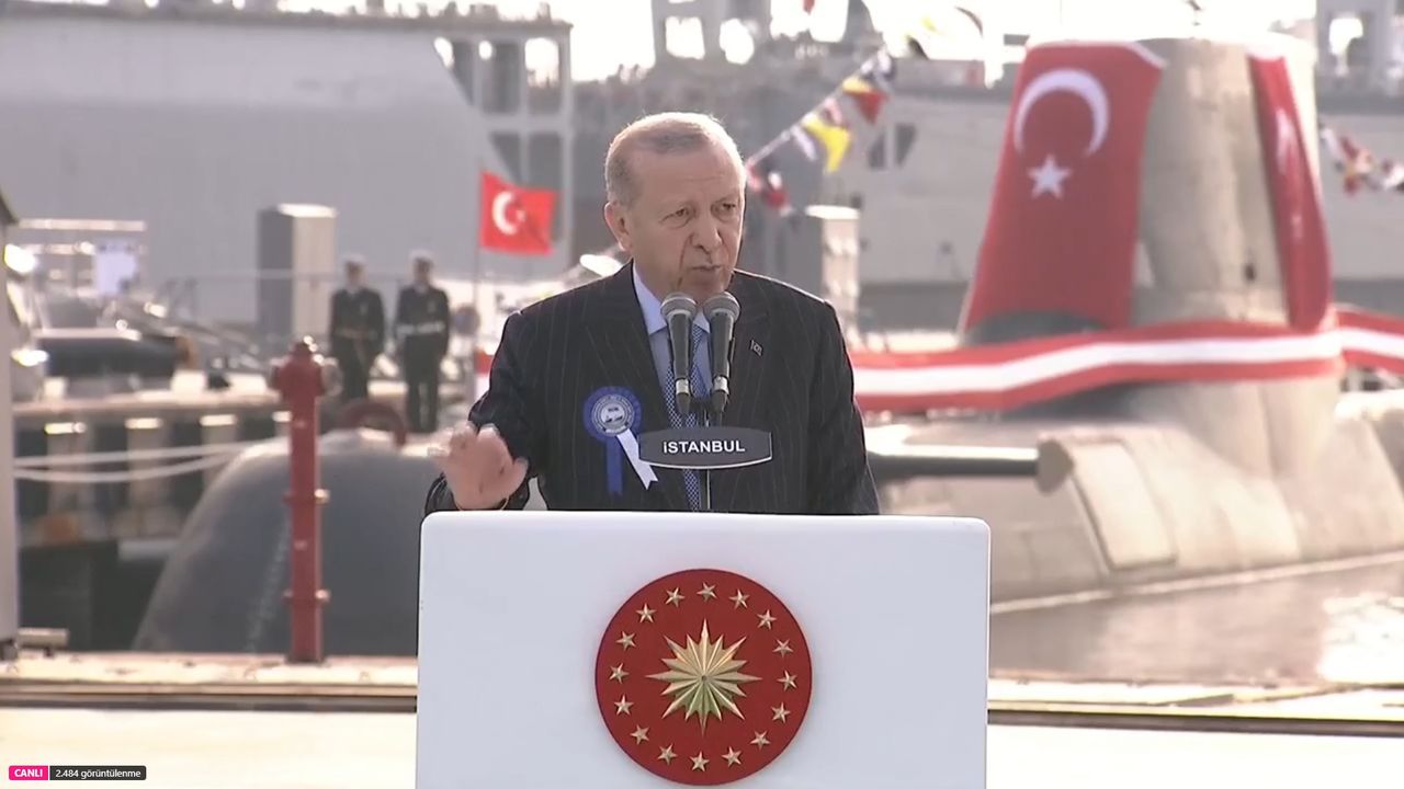 Cumhurbaşkanı Recep Tayyip Erdoğan, İstanbul Tersanesi Komutanlığı'nda düzenlenen "Deniz Platformlarının Hizmete Giriş, Bayrak Çekme ve İlk Sac Kesim" töreninde yaptığı konuşmada, "Dünyada kendi savaş gemisini geliştirip denize indiren 10 ülkeden biri Türkiye'dir" dedi.