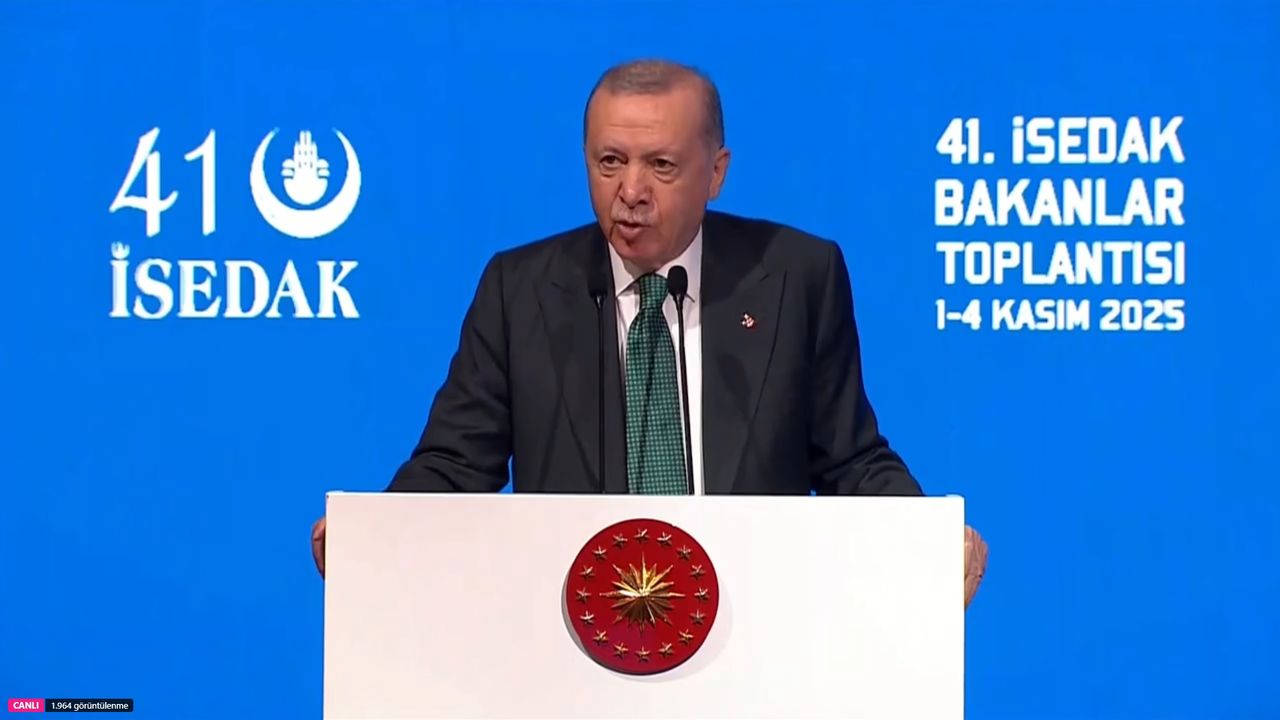Erdoğan, İstanbul Kongre Merkezi'nde düzenlenen 41. İSEDAK Toplantısı'nın açılış töreninde yaptığı konuşmada, burada yapacakları istişarelerin ve alacakları kararların, ülkelere, İslam dünyasına ve tüm insanlık için hayırlara vesile olmasını diledi.