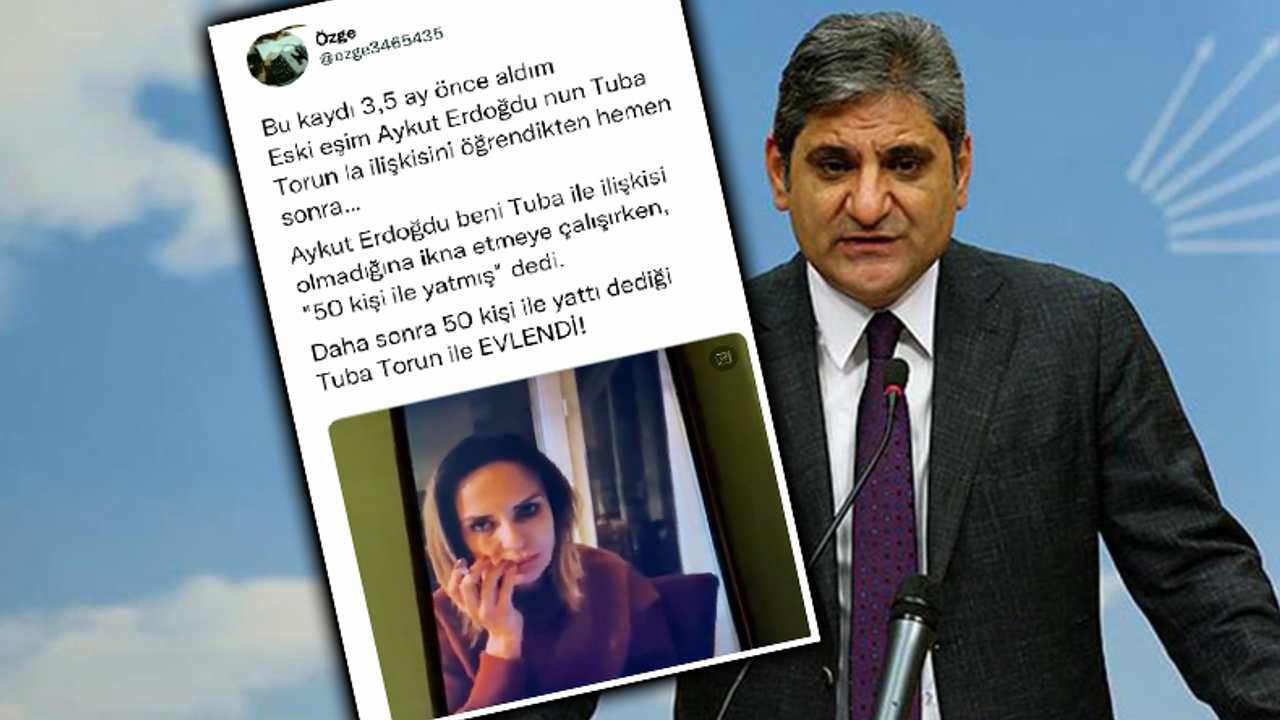 Özge Erdoğdu, Aykut Erdoğdu ile konuşmasını ve diyalog esnasında kendi görüntülerini içeren kaydı, “Bu kaydı 3,5 ay önce aldım. Eski eşim Aykut Erdoğdu’nun Tuba Torun la ilişkisini öğrendikten hemen sonra… Aykut Erdoğdu beni Tuba ile ilişkisi olmadığına ikna etmeye çalışırken, ‘50 kişi ile yatmış’ dedi. Daha sonra 50 kişi ile yattı dediği Tuba Torun ile evlendi!” metniyle paylaştı. Aykut Erdoğdu, bu paylaşımdan yaklaşık 3,5 saat sonra, sabah 03.23’te Twitter’dan yaptığı paylaşımda, eski eşinin açıklamalarının ardından “hastaneye kaldırıldığını” duyurduğu CHP Yüksek Disiplin Kurulu üyesi olan eşi Tuba Torun’dan, “yaşattıkları için” özür diledi.