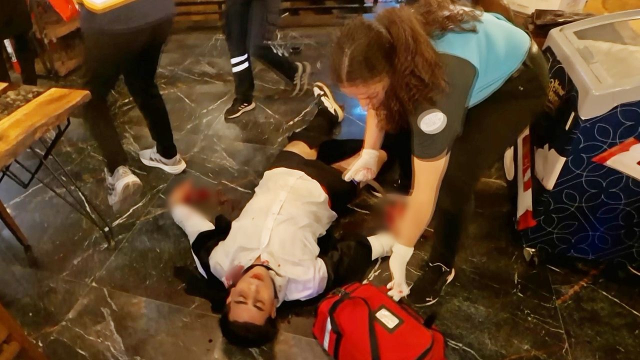 Yaralı restoran sahibi ile garson kanlar içinde yere yığılırken, Cumali Ç. tekrar eski eşi ve eski kayınvalidesine saldırarak darp etti. Restoranda bulunan müşteriler korkuyla dışarıya kaçarken, tabanca ve kavga seslerini duyan vatandaşlar durumu hemen 112 Acil Çağrı Merkezine bildirdi. İhbar üzerine olay yerine çok sayıda polis ve sağlık ekibi sevk edildi. Kısa sürede olay yerine gelen sağlık ekipleri yaralılara ilk müdahalede adeta zamanla yarıştı. Kulağından ve vücudunun çeşitli yerlerinden yaralanan Dudu A., "Kızımın eski kocası geldi taradı hepimizi. Boşandığı eşi. Kızımın patronunu, garson çocuğu hepsini vurdu. Manyağın tekiydi" dedi.
