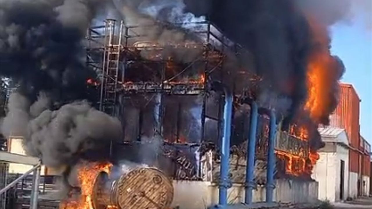 Emmioğlu Mahallesi'nde bulunan bir salça fabrikasının soğutma panelinde henüz belirlenemeyen nedenle yangın çıktı.