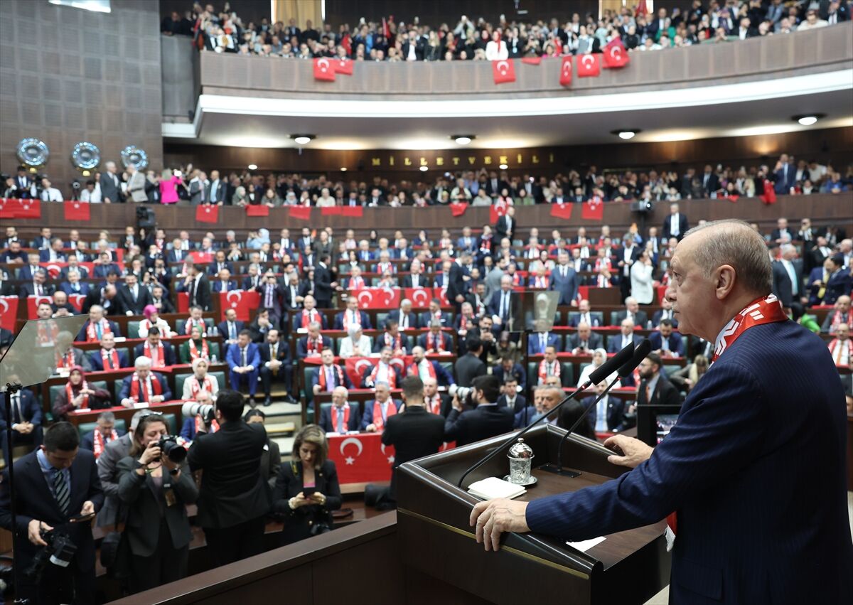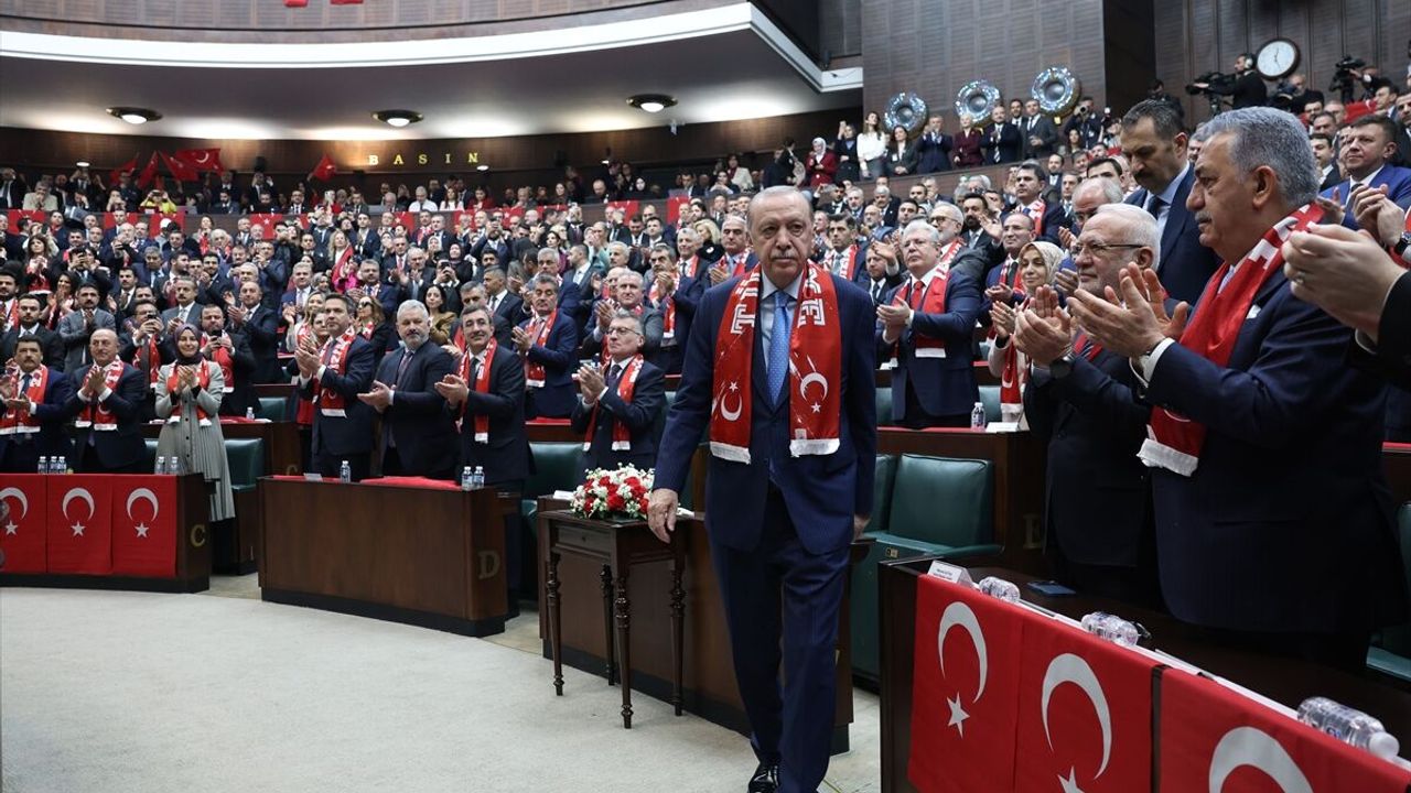 A Milli Futbol Takımı'nın Kosova'yı 1-0 yenerek 24 yıl sonra 2026 FIFA Dünya Kupası bileti almasının ardından AK Parti Grup Toplantısı kırmızı beyaz renklere büründü.