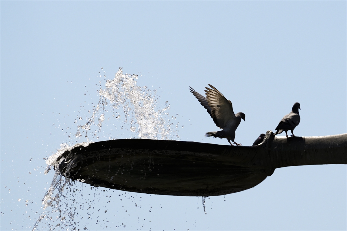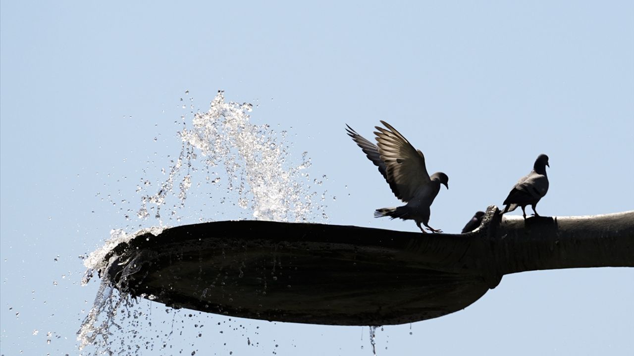 Ankara'nın Çankaya ilçesinde yer alan Kızılay ve Sıhhiye semtlerinde sıcak hava etkili oldu. Bazı kuşlar, buldukları su birikintisinde serinlemeye çalıştı.