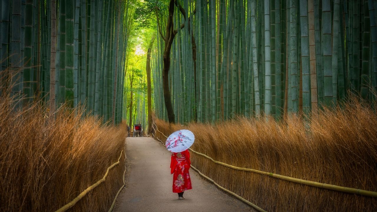 Japonya'nın en büyük şehirlerinden Kyoto'nun batısında, Araşiyama bölgesinde yer alan bambu ormanı, moso türünden ve 28 metreye kadar erişebilen uzun bambulardan oluşuyor. Bir koru olarak oluşturulan bölge, yaklaşık 16 kilometrekarelik bir alanı kaplarken içindeki yürüyüş yolları ile ziyaretçilerine nadir görülen bir atmosfer sunuyor.