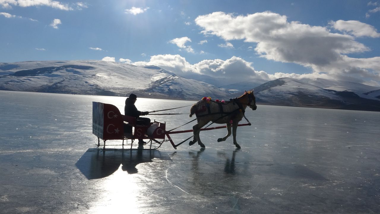 Buz tutan Çıldır Gölü misafirlerini ağırlamaya başladı