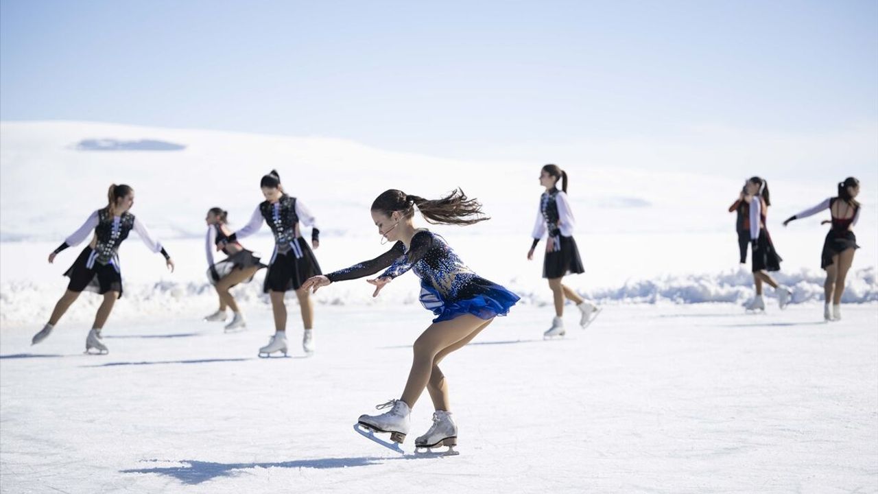 Buzla kaplı Çıldır Gölü üzerinde "Senkronize buz pateni"