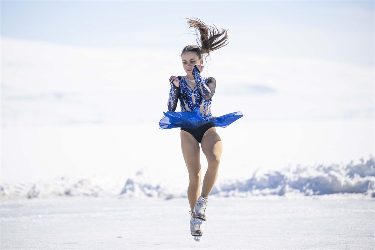 Senkronize Buz Pateni Kadın Milli Takımı, 8 Mart Dünya Kadınlar Günü kapsamında yüzeyi tamamen buz tutan Çıldır Gölü'nde gösteri gerçekleştirdi.