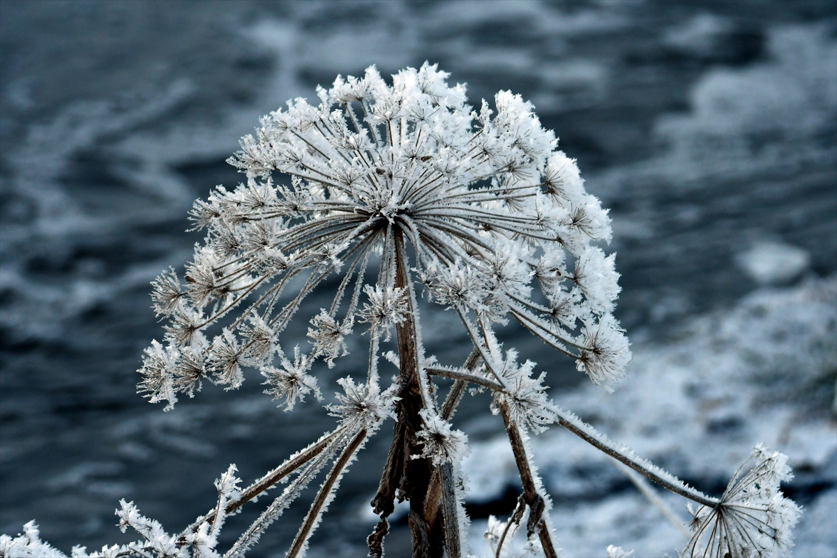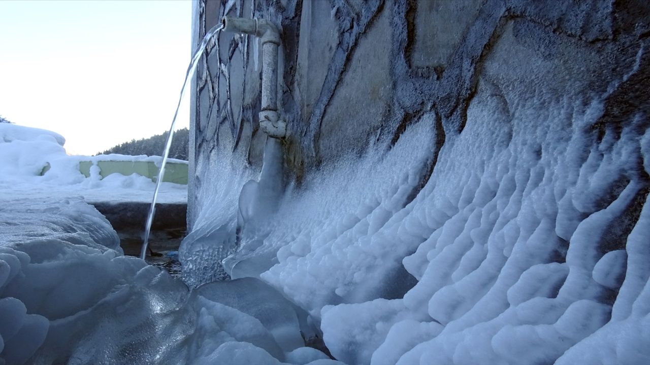Gece hava sıcaklığının sıfırın altında 12 dereceye düştüğü Kars'ın Sarıkamış ilçesinde, ağaçlar ile bitkiler kırağı tuttu, bina çatılarında buz sarkıtları oluştu.