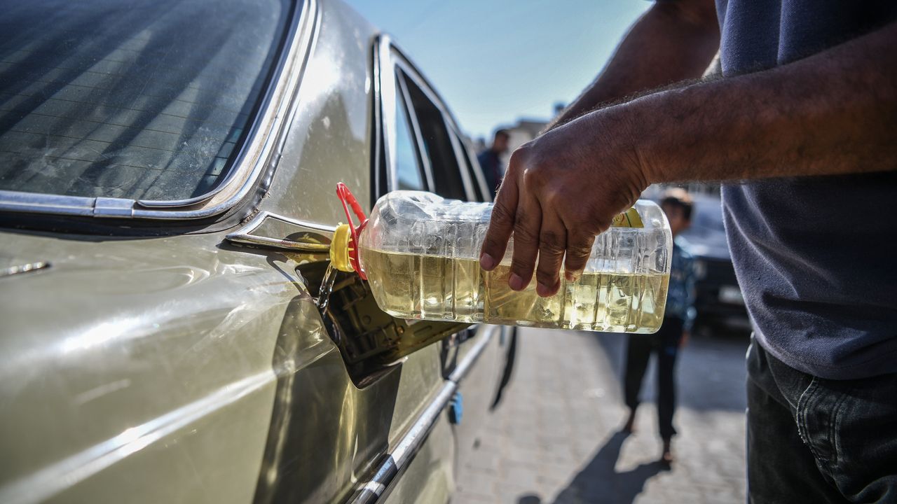 İsrail saldırılarının başladığı 7 Ekim'den bu yana hiç yakıt girişi olmayan Gazze Şeridi’nde akaryakıt krizi yaşanıyor. Akaryakıt olmaması ve elektrik kesintisi nedeniyle halkın yaşam şartları giderek zorlaşıyor. Yakıt krizine karşı çaresiz kalan Han Yunus kentindeki Gazzeliler, bitkisel yağ ve mazotu yakıt deposuna ekleyerek arabalarını çalıştırıyorlar.