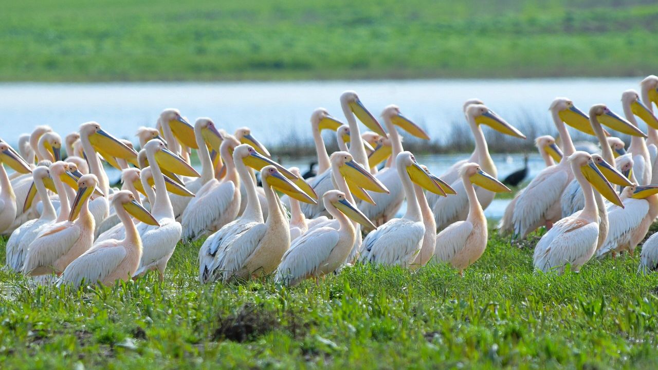 Göç yolundaki pelikan sürüsünün Bursa molası