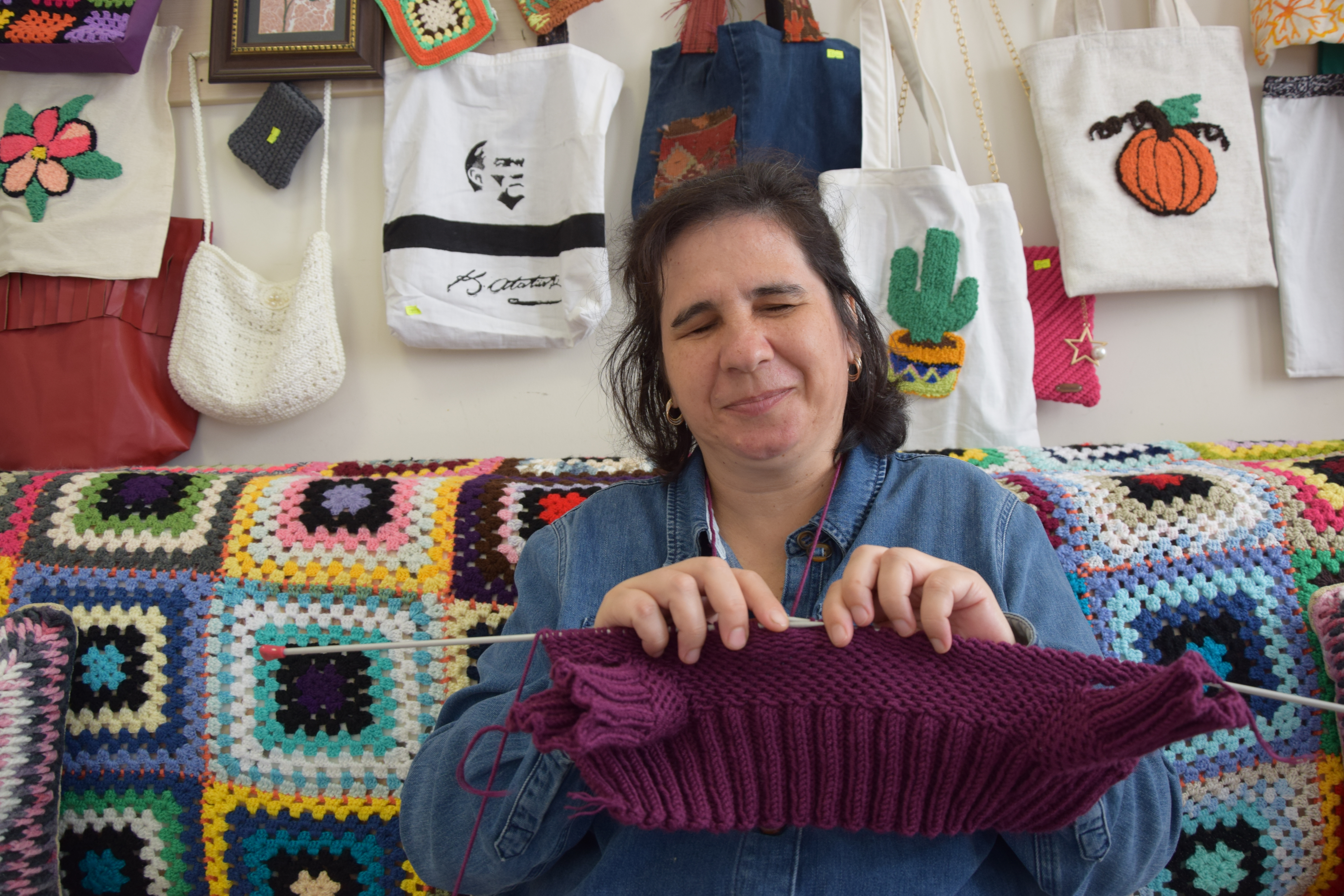 Gönül gözüyle gördüğü dünyasını örgüyle güzelleştirdi