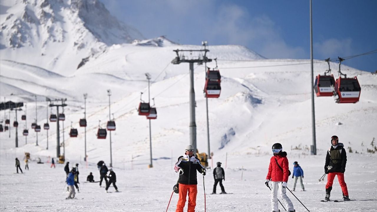 Hafta sonu tatilini kayak yaparak geçirmek isteyen vatandaşlar, Erciyes Kayak Merkezi'nde yoğunluk oluşturdu.