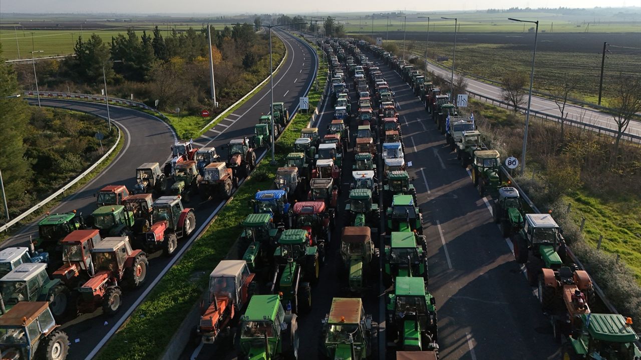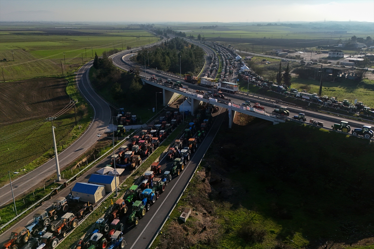 Yunanistan'da çiftçiler, Larisa kentinde geciken devlet desteklerinin ödenmesi ve yüksek üretim maliyetlerinin düşürülmesi için ulusal bir karayolunu traktörleriyle trafiğe kapatarak protesto düzenledi.