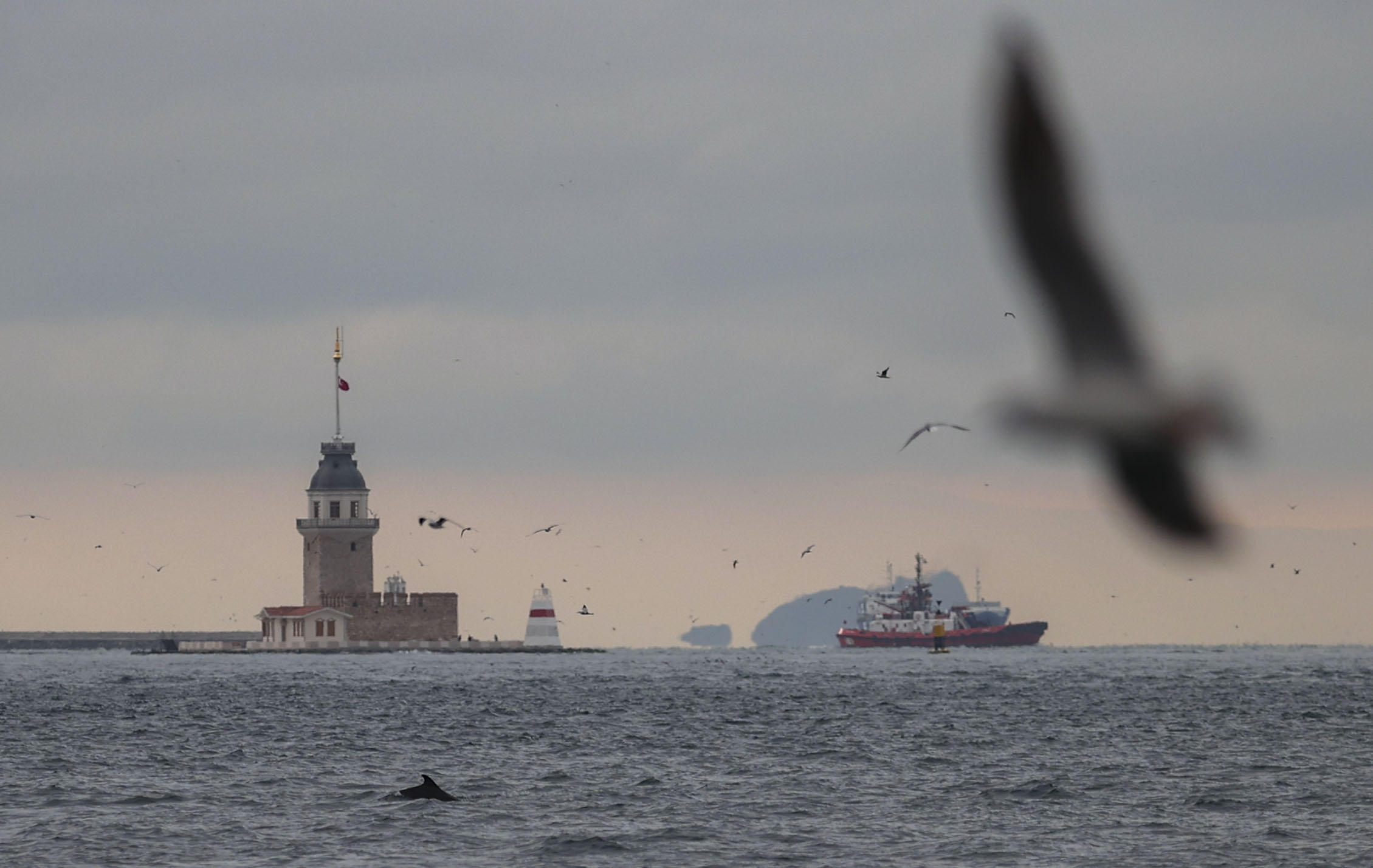 İstanbul Boğazı'nda sabah saatlerinde Dolmabahçe Sarayı önünde avlanan yunus sürüsü görüntülendi.