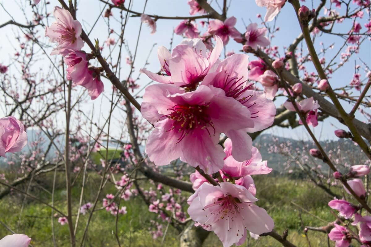 İzmir'in Selçuk ilçesinde ilkbaharın gelişiyle çiçek açan şeftali ağaçları pembe tonlara büründü.