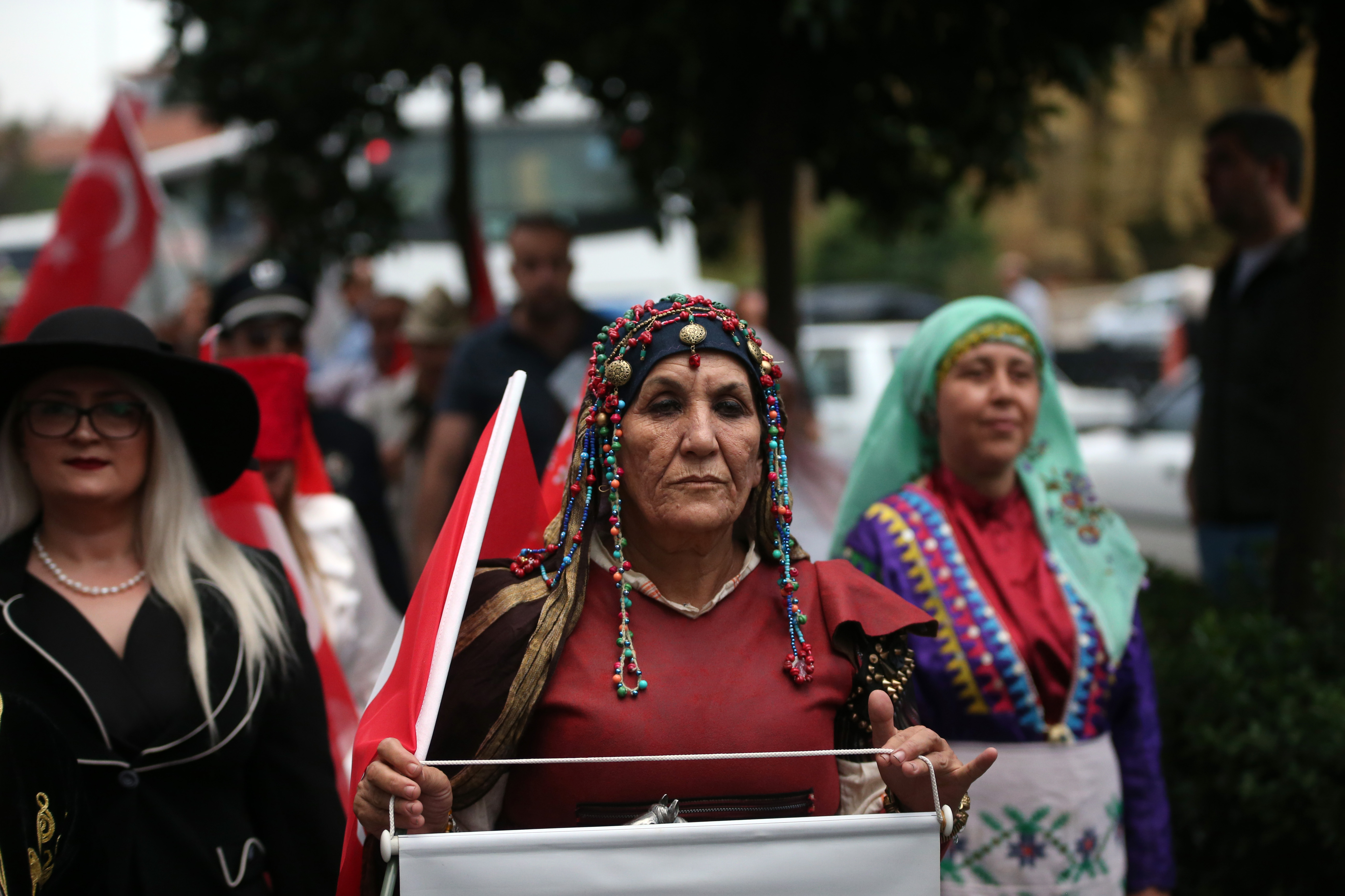 Aydın'da Cumhuriyet'in 100. yıl dönümü kapsamında tarihi, yöresel ve mesleki kıyafetler giyen kadınlar yürüyüş yaptı.
