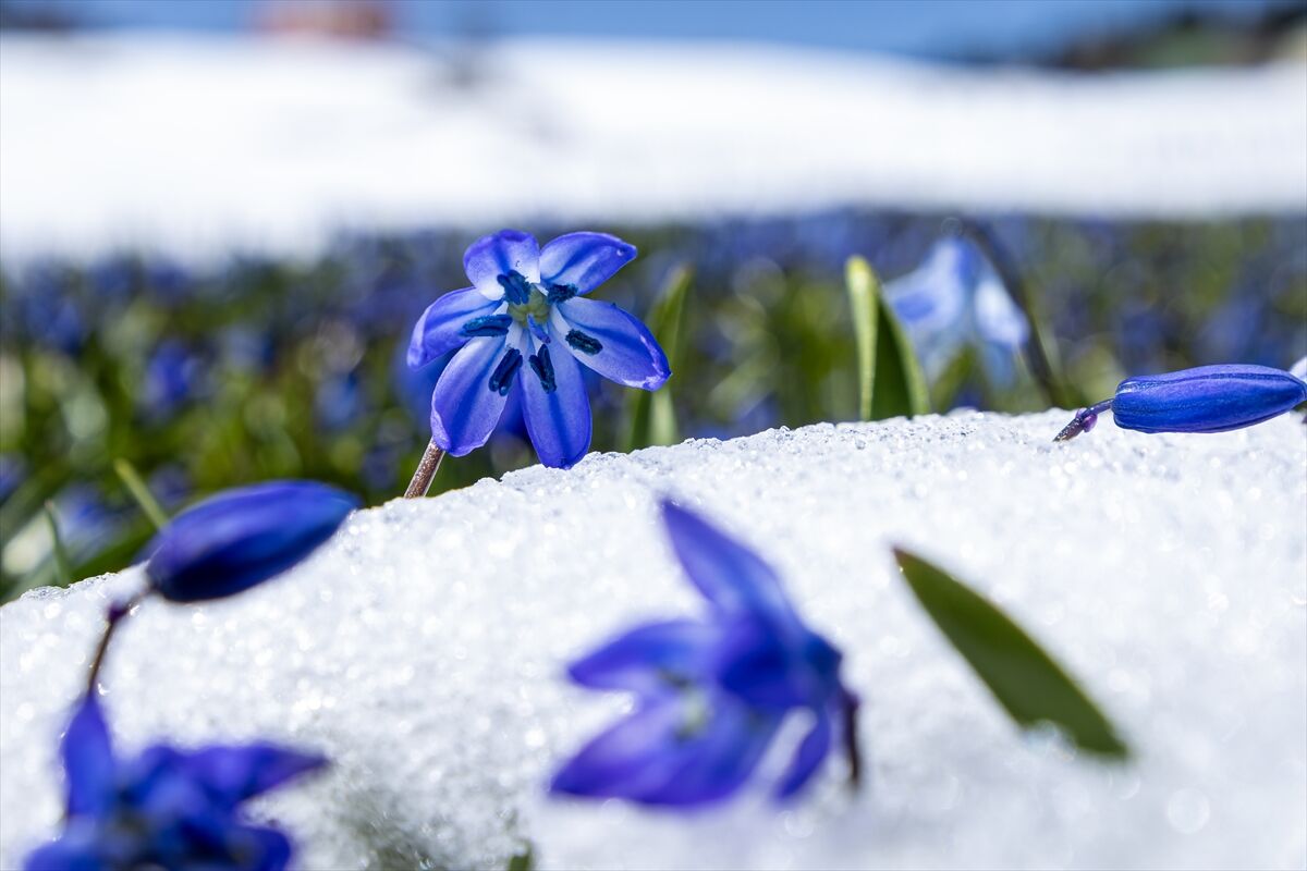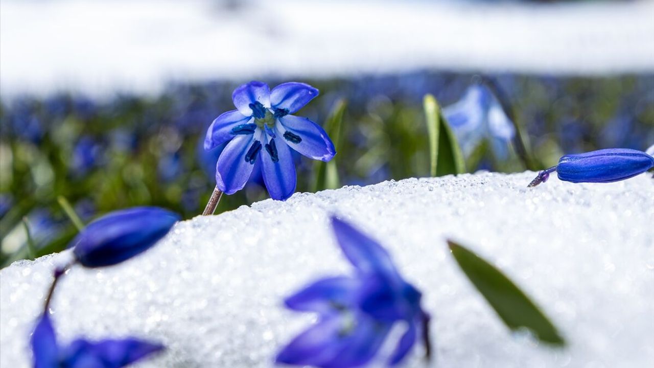 Kadıralak Yaylası'ndaki mavi yıldız çiçekleri kar altında kaldı