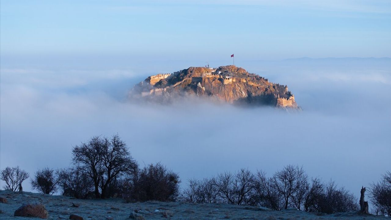 Afyonkarahisar'da sabah saatlerinden itibaren etkili olan sis, kentin sembolü "Karahisar Kalesi"nde güzel görüntüler oluşturdu.
