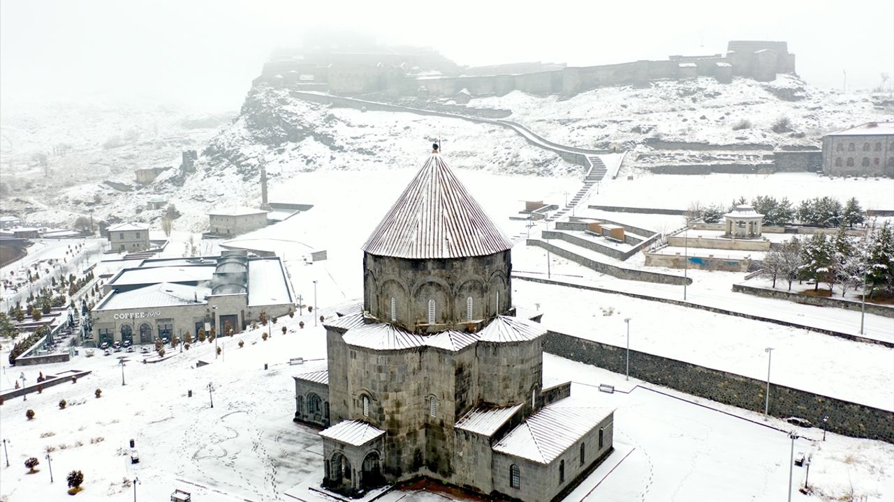 Kars'ta iki gündür etkili olan kar yağışıyla şehir merkezi beyaza büründü.