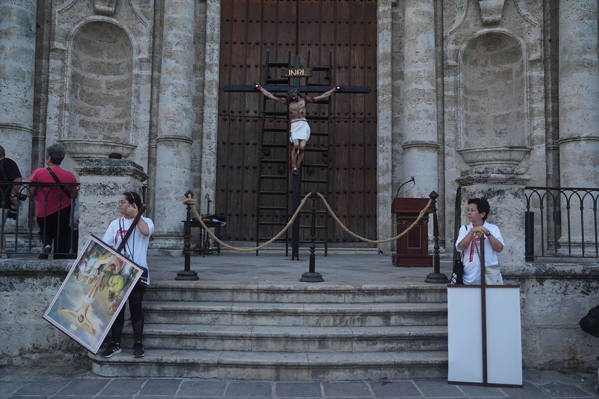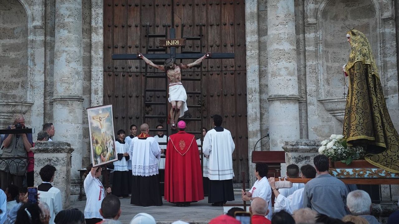 Küba’nın başkenti Havana’daki Eski Havana’da Katolikler, 'Ölü İsa Yürüyüşü' olarak bilinen Kutsal Cuma etkinliği düzenlendi. Dini gelenekler çerçevesinde gerçekleştirilen yürüyüşte, Hristiyan inancına göre İsa'nın çarmıha gerilişi ve ölüm süreci canlandırılarak anıldı.